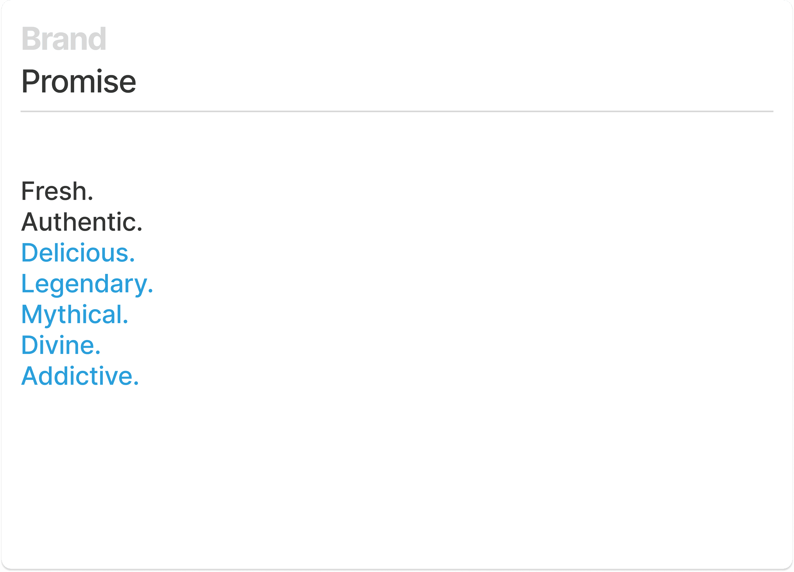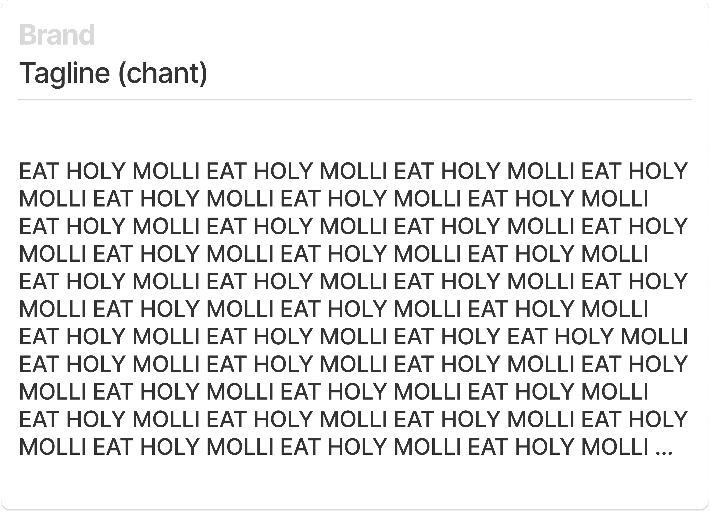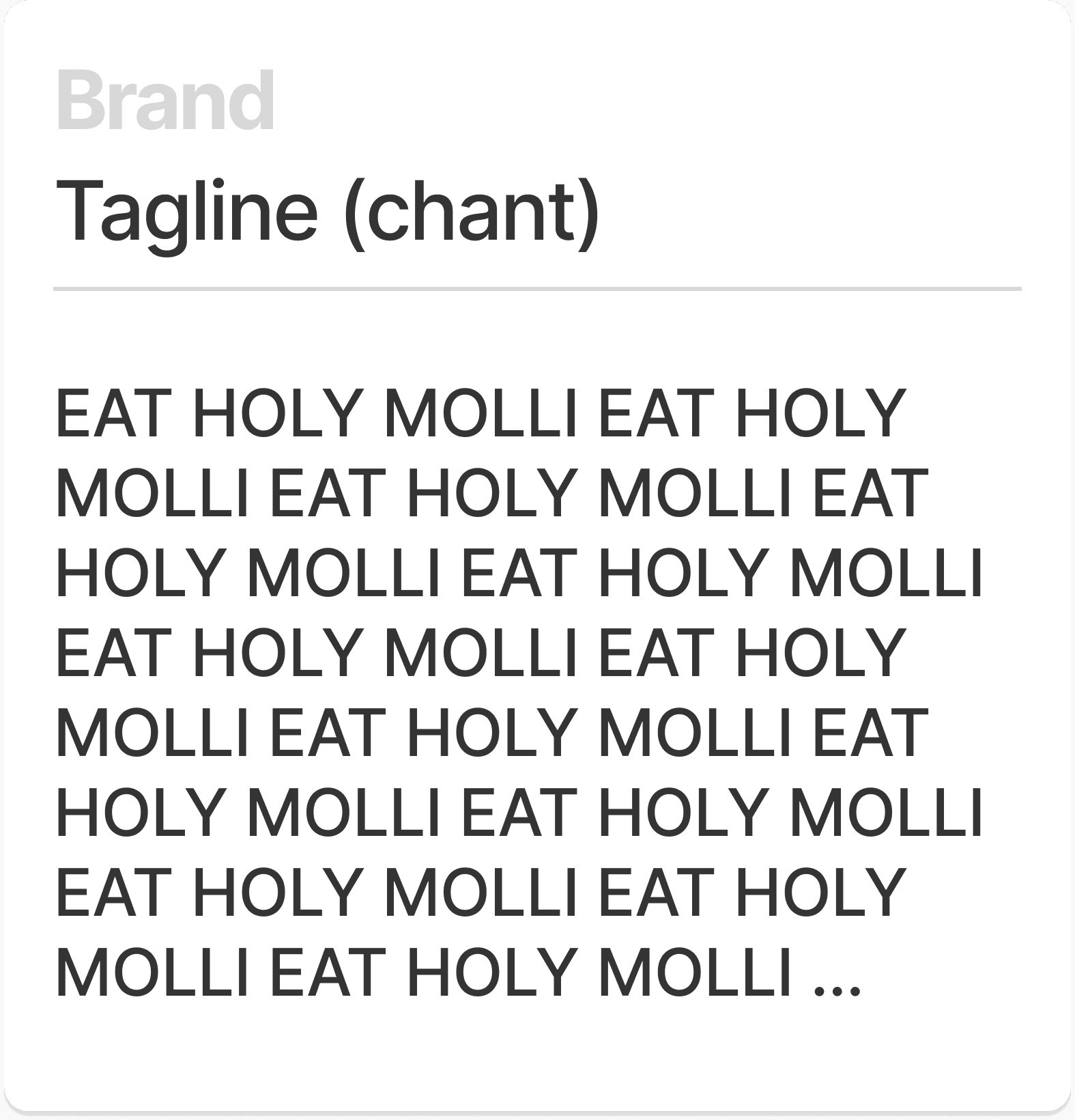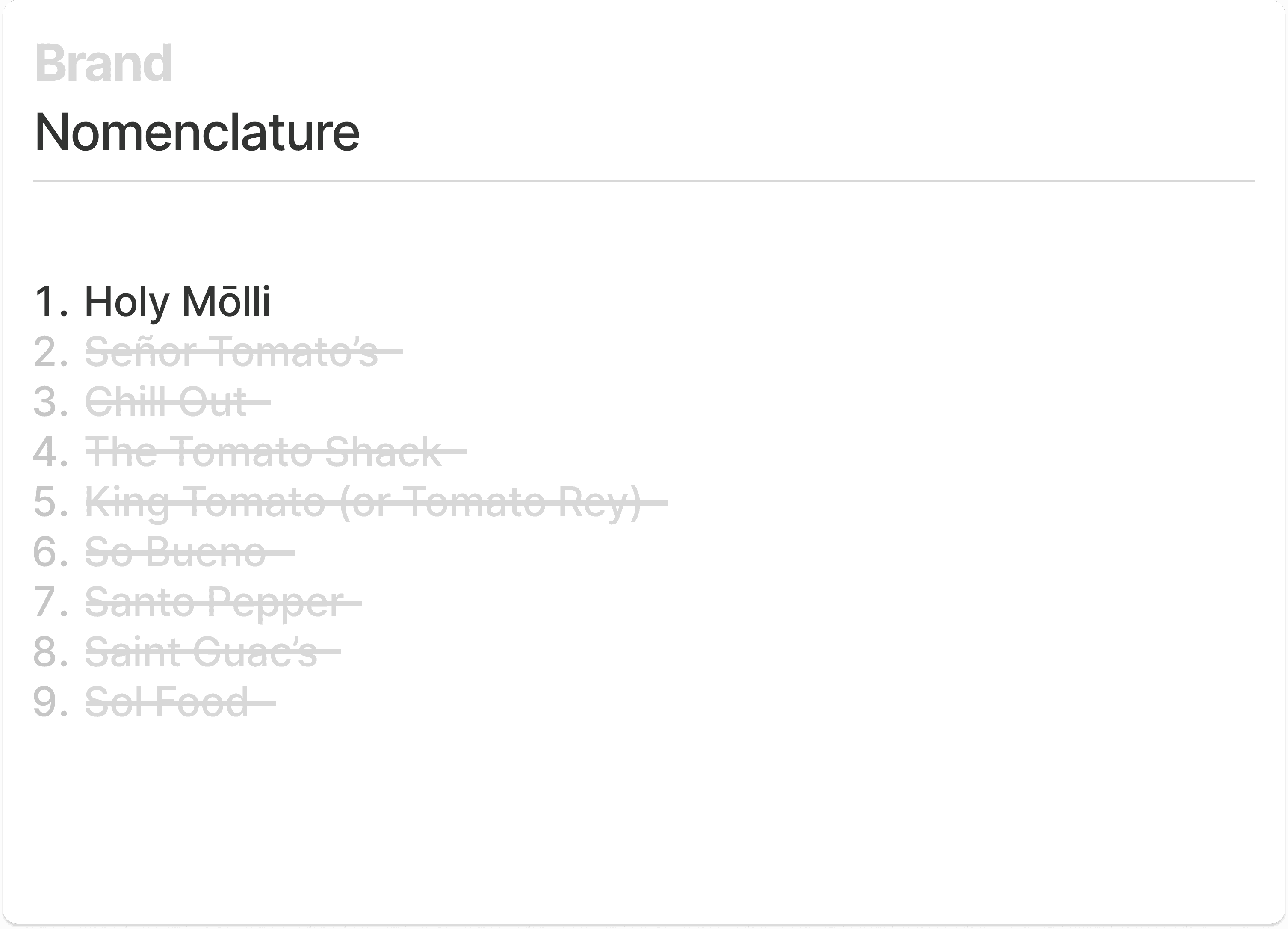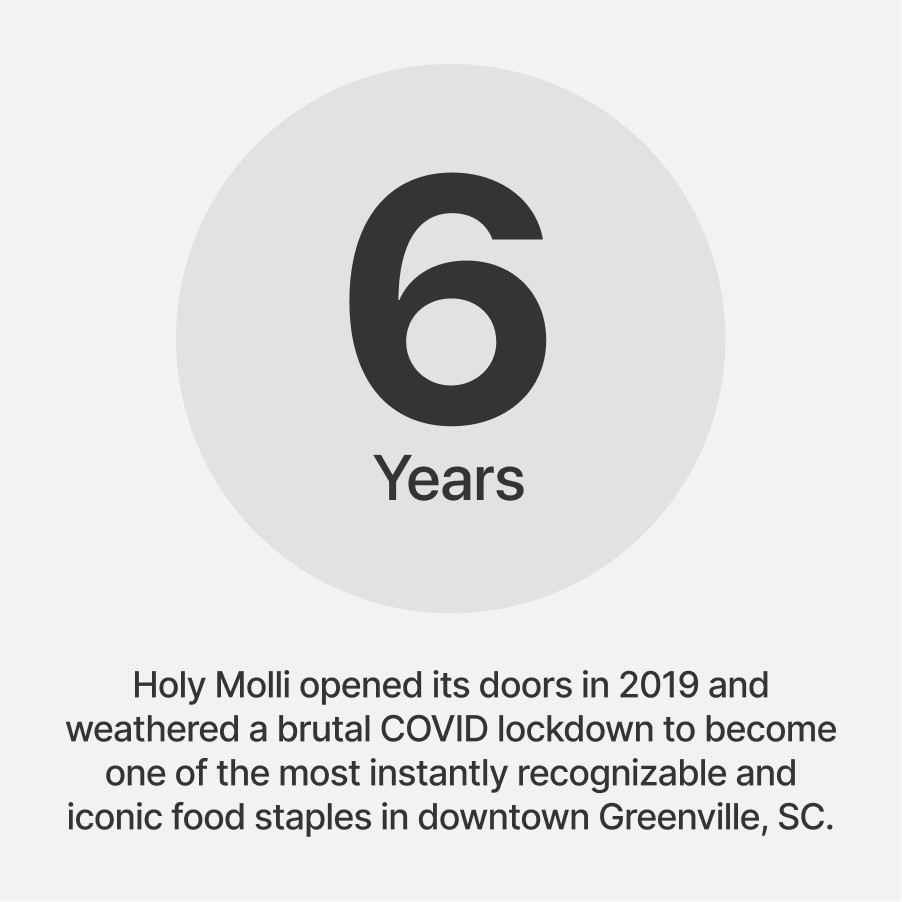 The Americanized concept of Mexican food dominates the market. Many Mexican restaurants succumb and adapt. In addition, Holy Mōlli was on course to open its first location in the middle of the 2020 pandemic! Standing out was paramount. To give Holy Mōlli a viable advantage, I created a brand strategy and language that convey a soulful, authentic depiction of Mexican culture, the richness and versatility of its cuisine, Luis and Lydia’s unique sense of humor, and unexpected contemporary influences, to craft a fresh and distinctive brand personality and experience. The goal was to establish three things to get people in the door: 1. Strong brand promise 2. A distinctive brand personality. 3. An infectious tagline and call to action. If done right, the amazing food would keep people coming back.