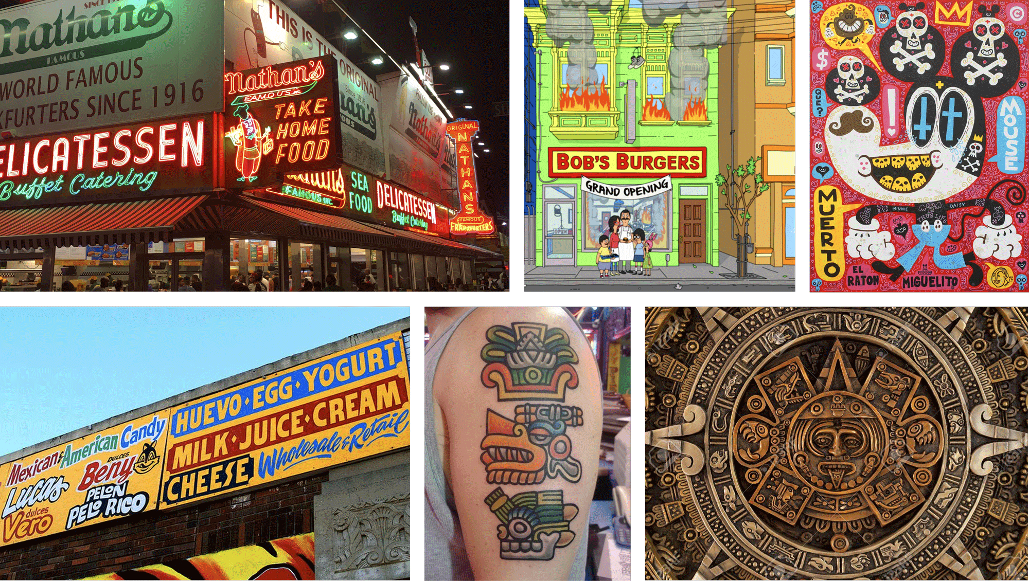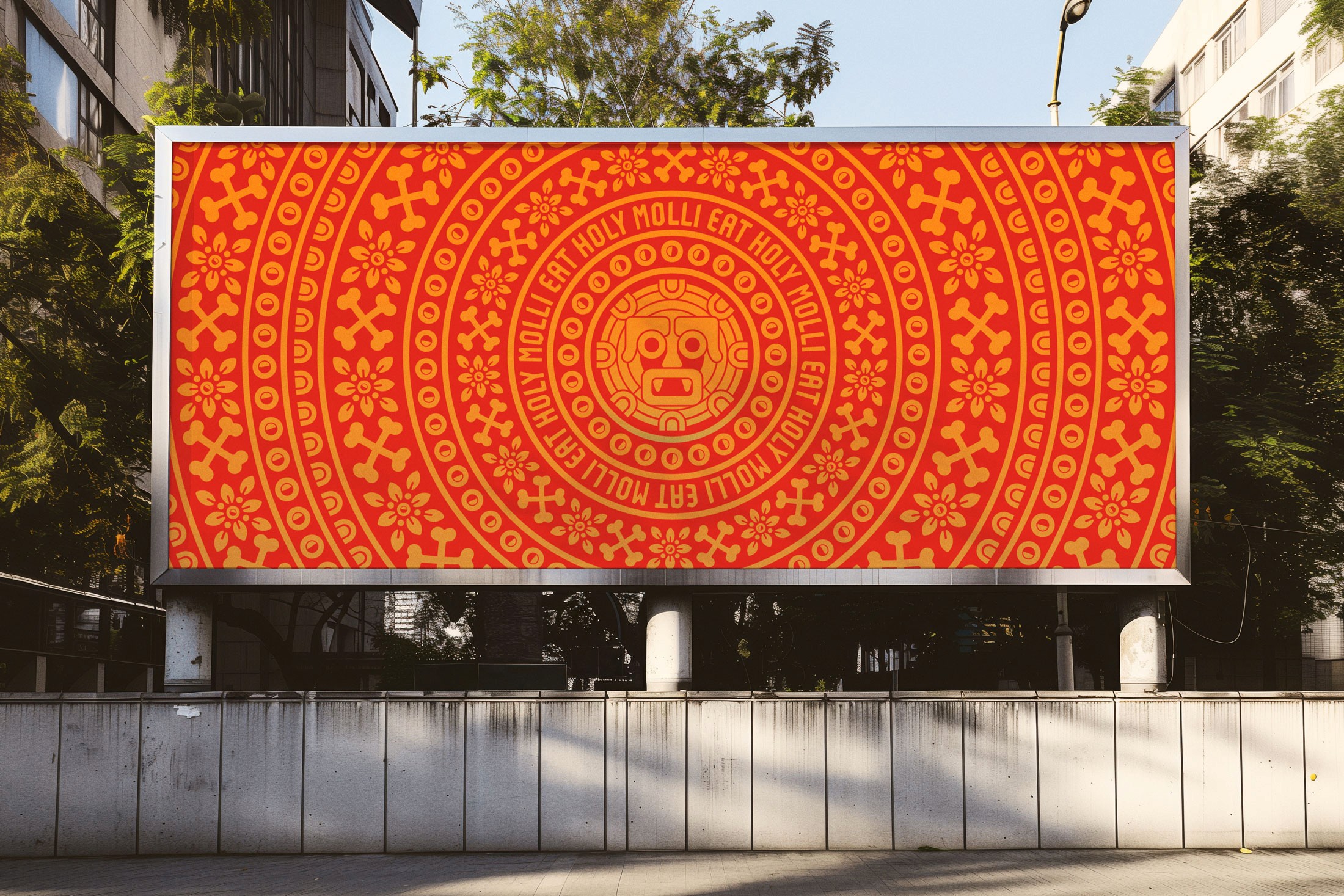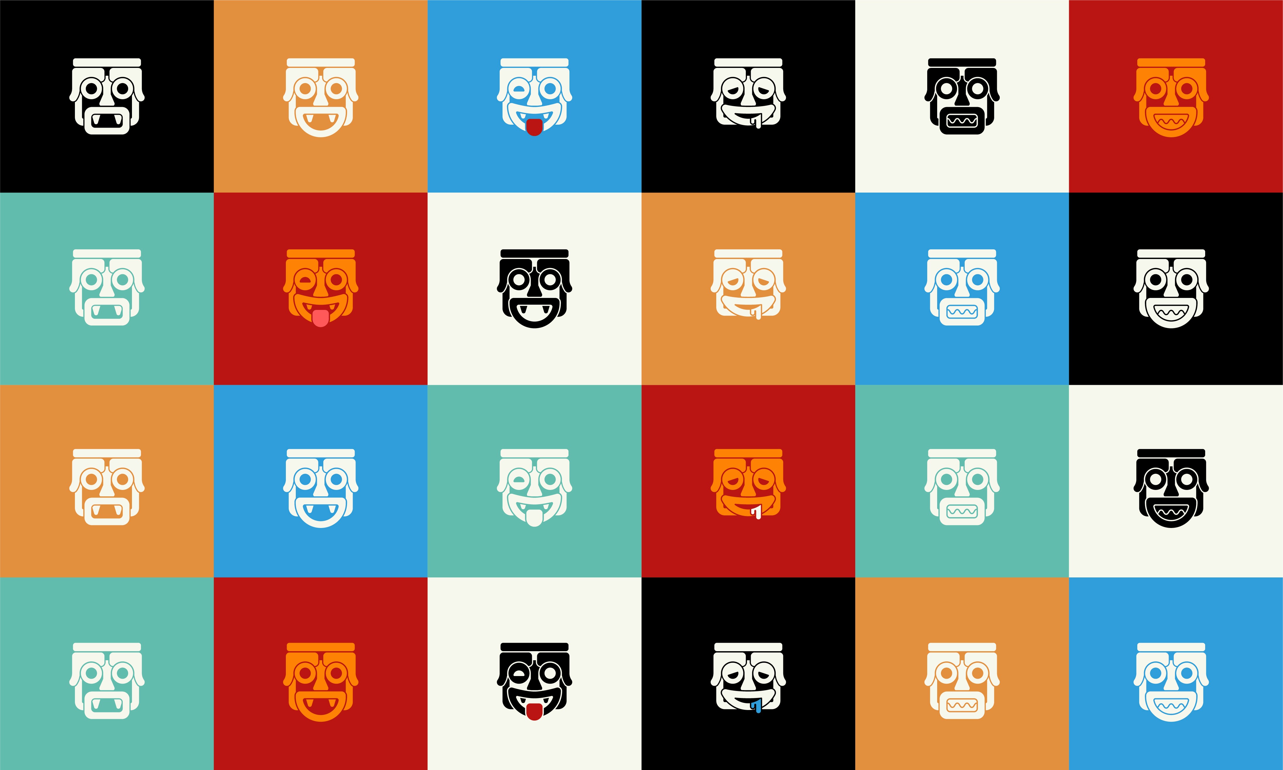 I played around with cheeky religious undertones — what if Aztecs opened a food truck in Brooklyn, and the food was so delicious, people who ate it developed a blind cult-like devotion to it. For the logotype, that means bold, tall letterforms that signify exclamation. The stylization of the logotype is inspired by neon signage in New York bodegas/restaurants and street graffiti. Animated historical depictions of the Aztec god, Tláloc, and emojis inspired the brand mark. The primary mark is an expression of shock and awe — the look of surprise on people’s faces when they bite into Luis and Lydia’s unique food blend… “HOLY MOLLI!”